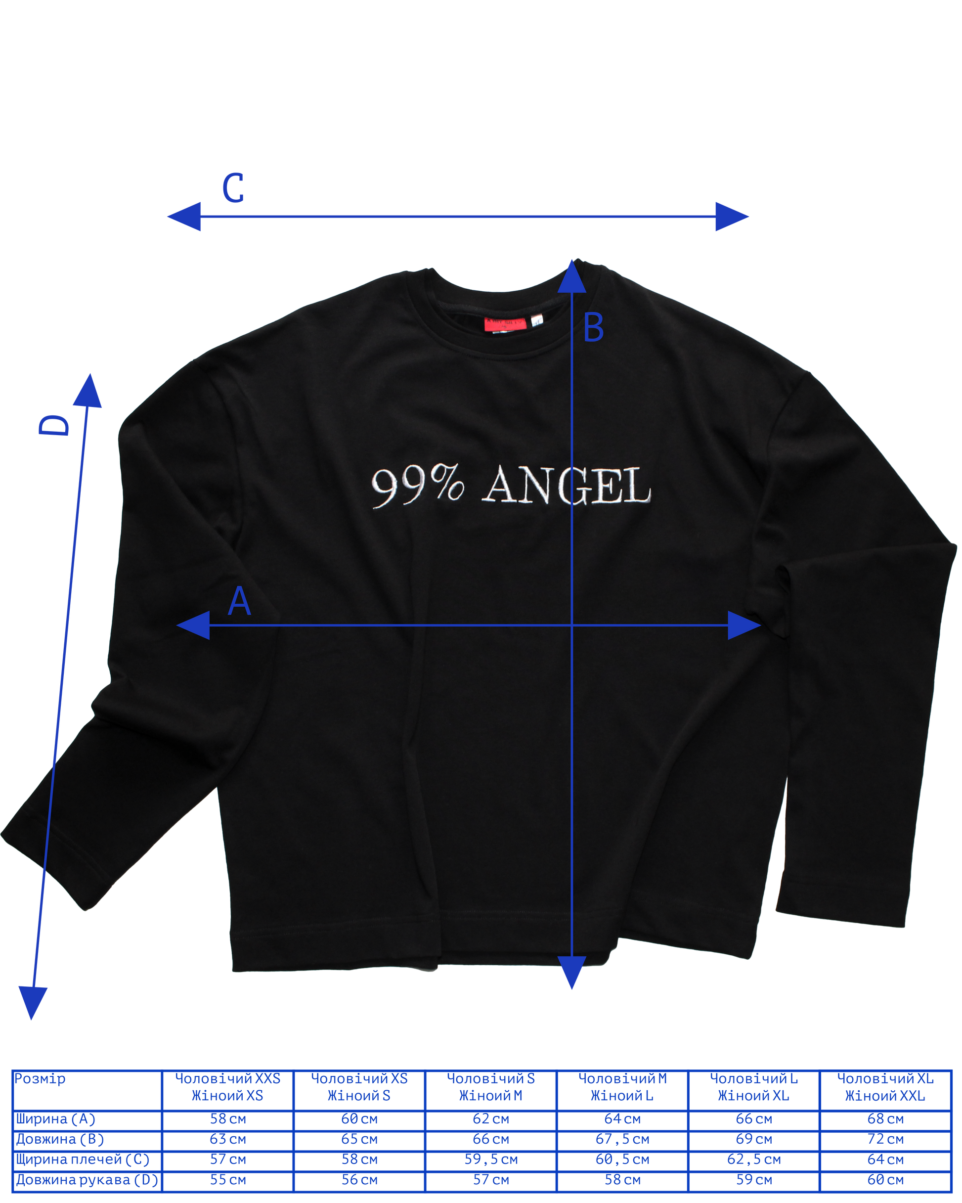 Лонгслів з вишивкою ‘99% ANGEL’ в чорному кольорі