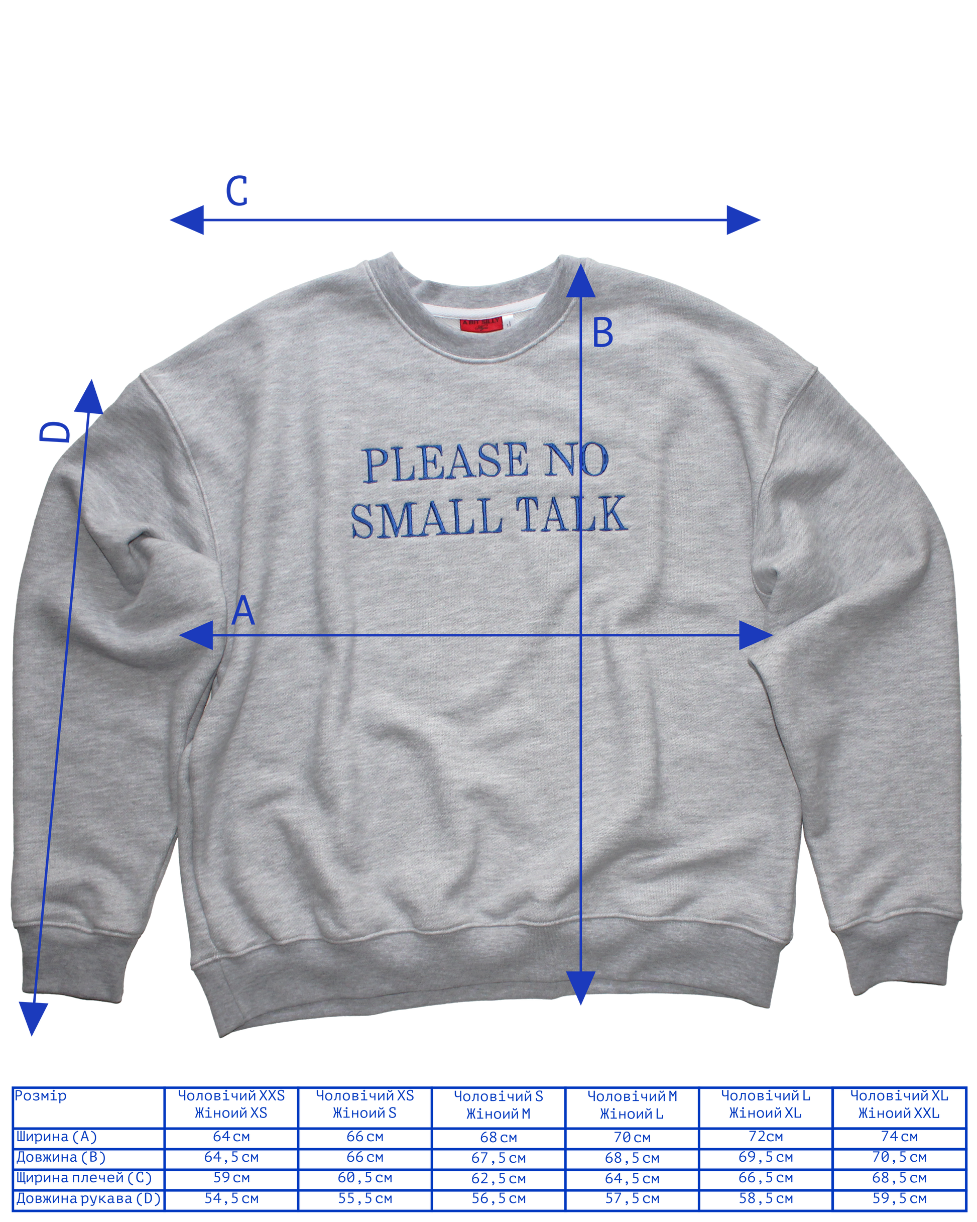 Толстовка з вишивкою 'PLEASE NO SMALL TALK' в кольорі сірий меланж